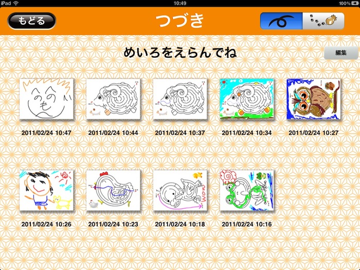 もちろん、描いた線は保存でき、つづきから遊べます。